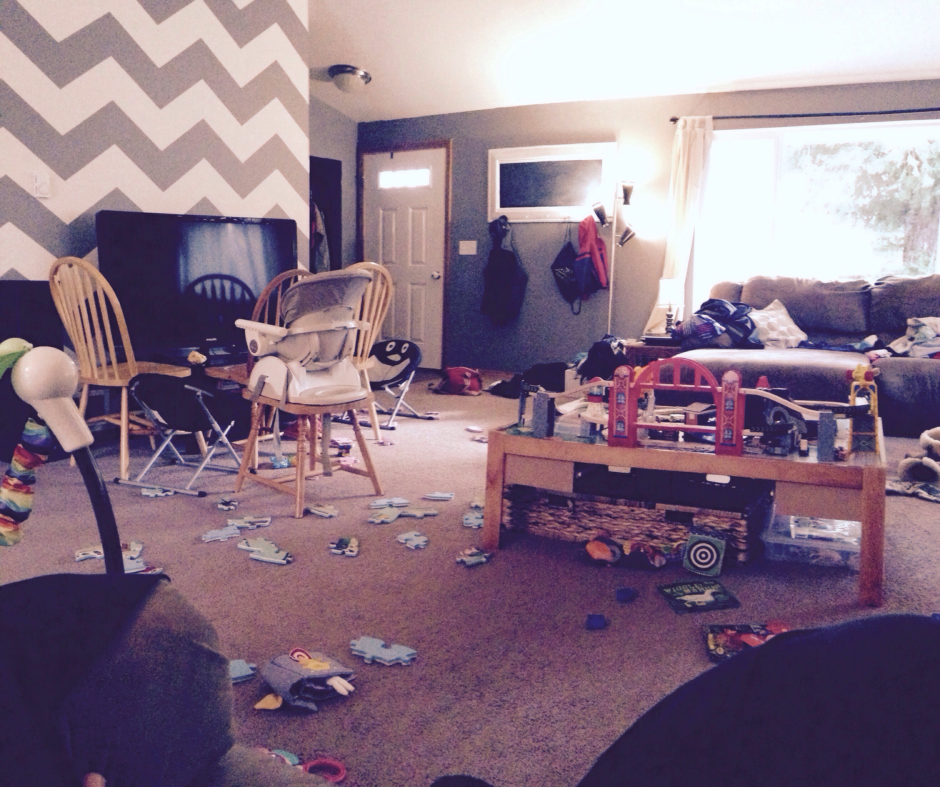 One hour. That’s all it takes for my living room to travel from the state of clean and peaceful… to the other side of disaster zone. In that journey it jumps over piles of cracker crumbs, climbs mountains of laundry (once folded but tipped again by adventurous toddlers), nearly trips over toys (that are much more enjoyable spread throughout the house then in their toy box-home), and crawls under a fort made with every chair we own. My poor, tired living room then arrives at the overwhelming state of “disaster zone.”